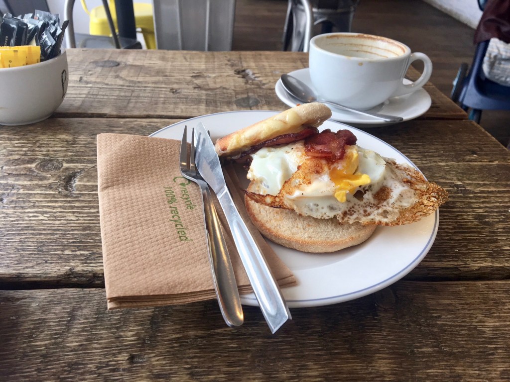 Now, what about the food? Nothing too fancy here. The menu is simple but everything is tasty! For breakfast, you will find the regular eggs on toasts, breakfast muffins and pastries. For lunch, you can order nice toasty sandwiches which will keep you full until dinner.